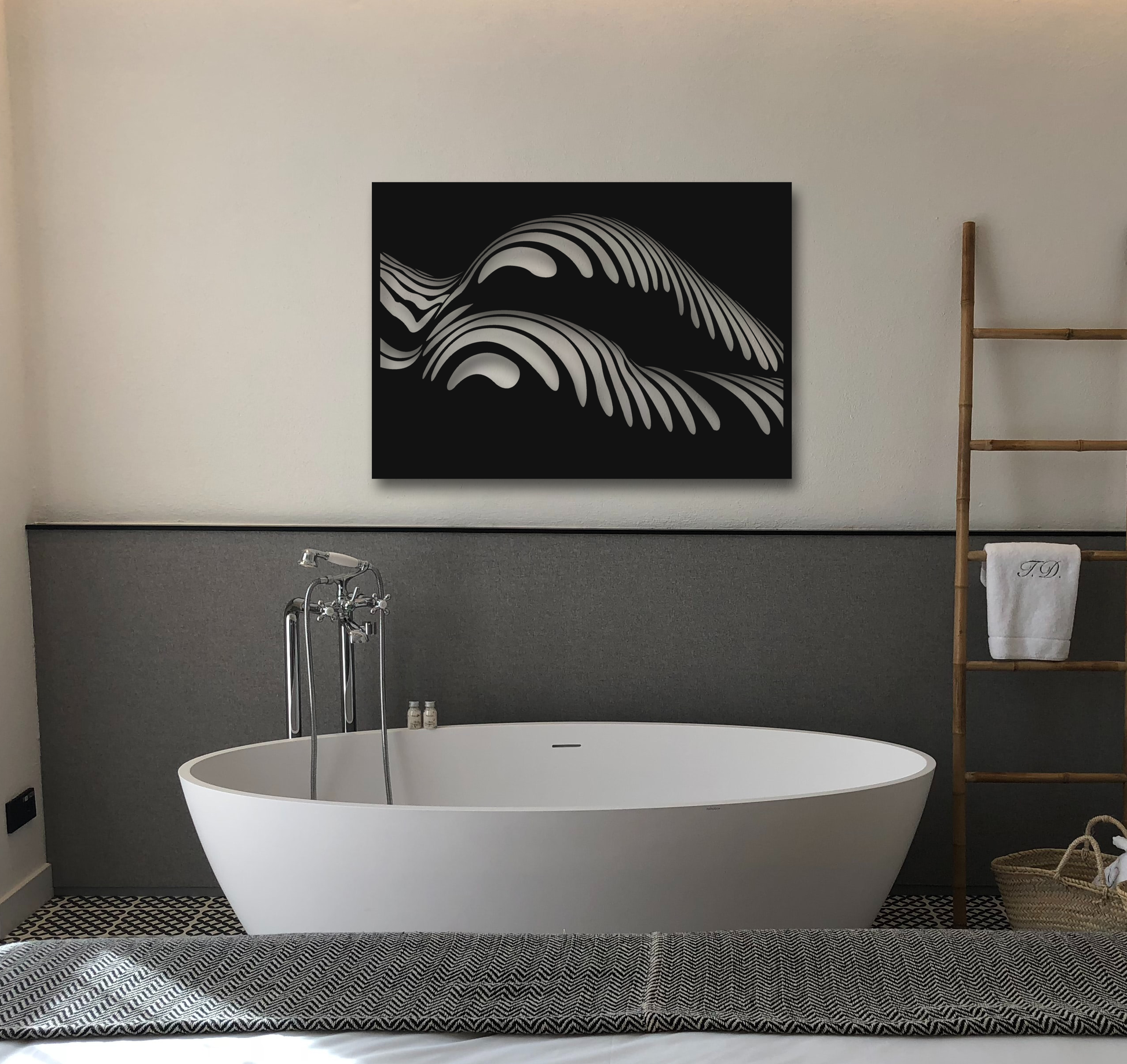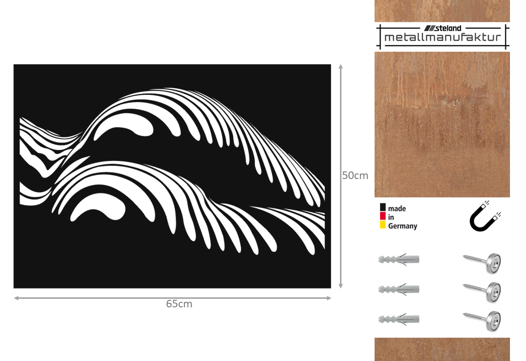 Das Wandbild der Ästhetik des Körpers. Es wird bei uns aus 2mm starkem Blech geschnitten, anschließend entgratet und mit einem feinem, mattem Lack pulverbeschichtet. Mit unserer Magnethalterung für die Wand, lässt sich das Bild an die Wand hängen, ohne dass man eine Aufhängung oder Schrauben sieht.