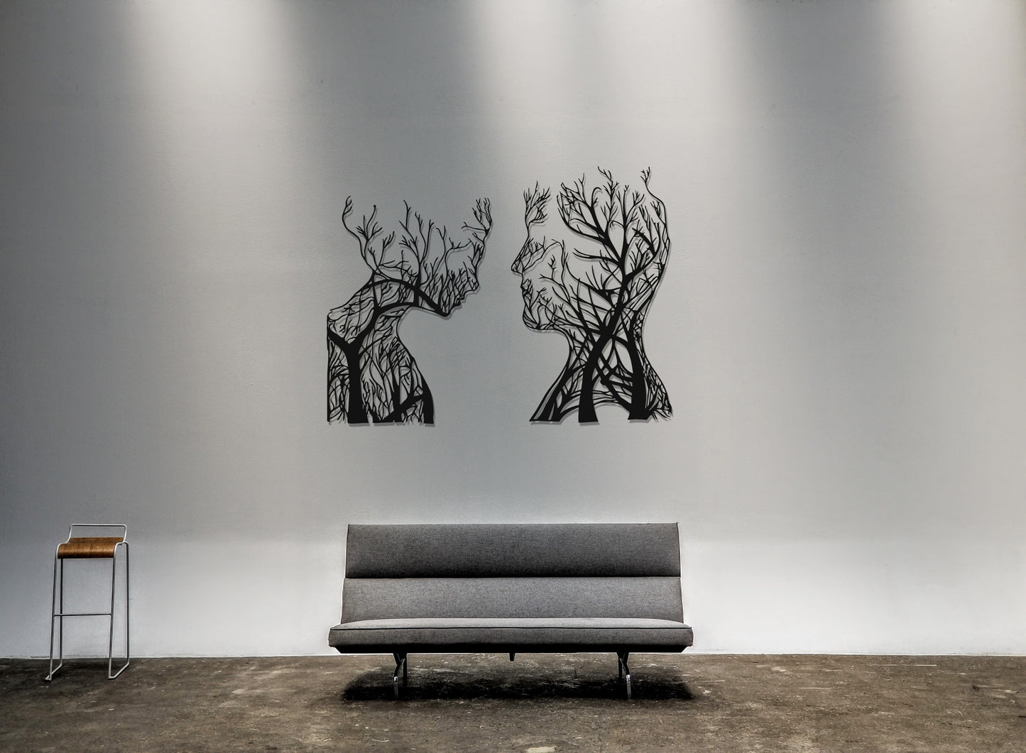 Wandbild Baum- Gesichter - Frau und Mann XL-Variante | Stahl pulverbeschichtet